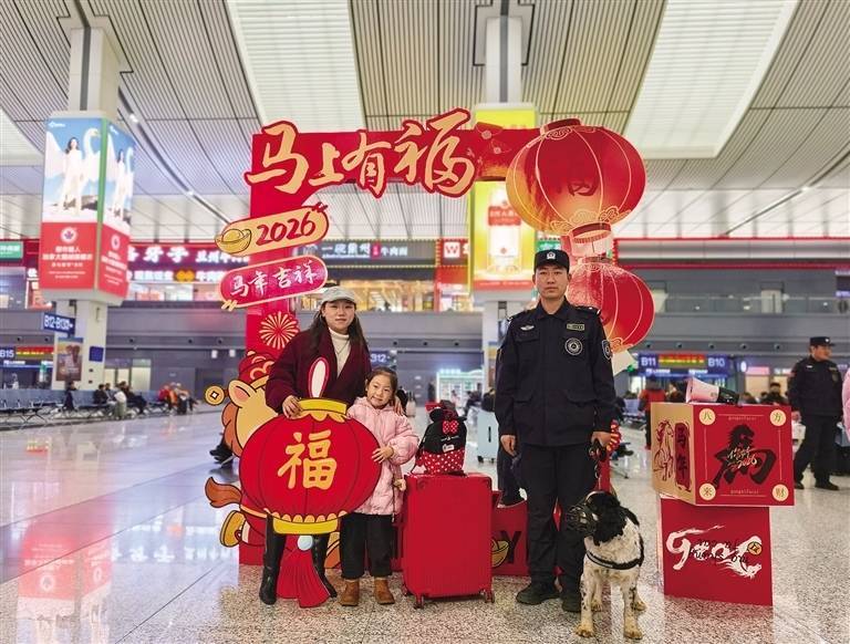 r在候车室内,舞蹈《舞动之礼》《青苹果乐园》活力绽放,歌曲《启程》《亲爱的旅人》温暖回家路;“山河入画·铁轨连诗”文创产品互动问答引得旅客踊跃参与,马年人偶志愿者引导大家在签名墙留言打卡,新年主题背景墙前旅客纷纷驻足绘制贺卡,写下对家人的思念与新春的期许。此外,“我的铁路风景”优秀作品展览区集中展示全路精品佳作,为春运增添了浓厚的文化氛围。